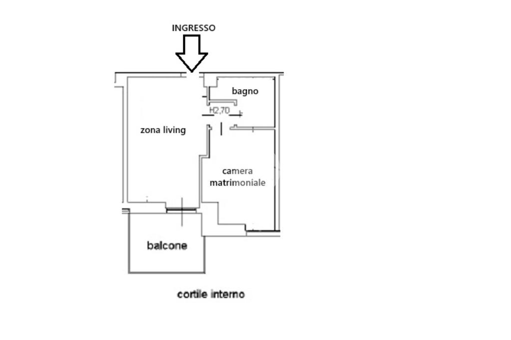 Ingresso che si apre subito nella spaziosa e luminosa zona living con cucina a vista fatta su misura Aran ed arredata con elettrodomestici di pregio: piano induzione, cappa integrata e lavastoviglie, e dalla quale tramite porta finestra accediamo al terrazzo della casa, che sviluppandosi in maniera regolare sia in lunghezza che larghezza da la possibilità di collocare diverse soluzioni d’arredo. Segue, con medesima esposizione, la spaziosa camera matrimoniale finestrata ed infine bagno con piatto doccia walk-in.
