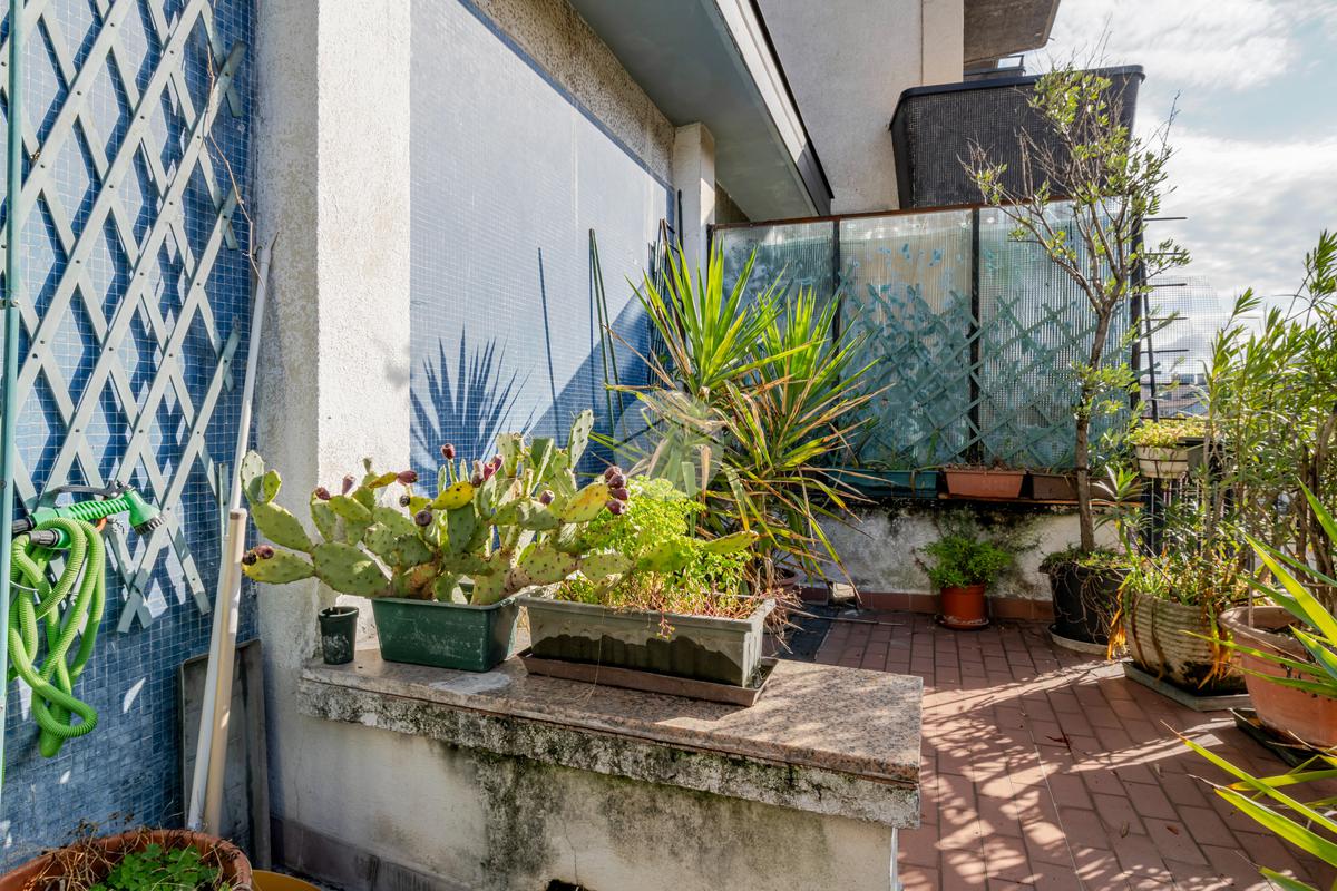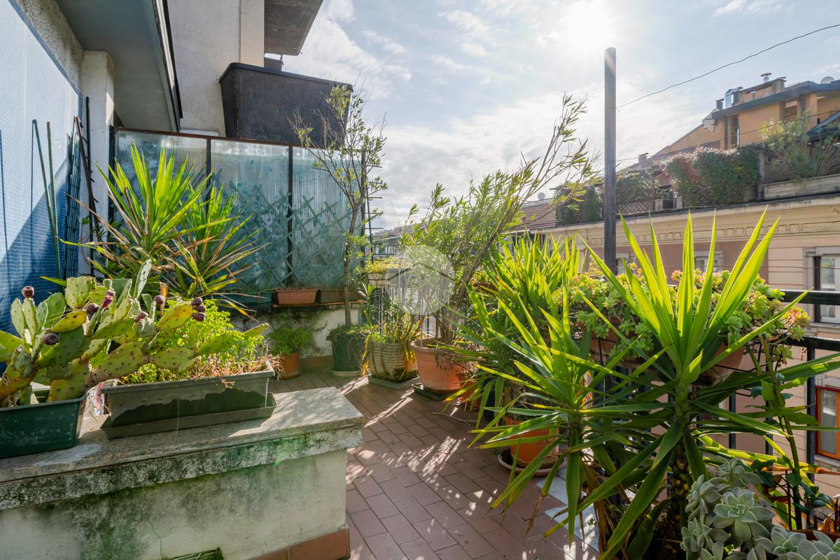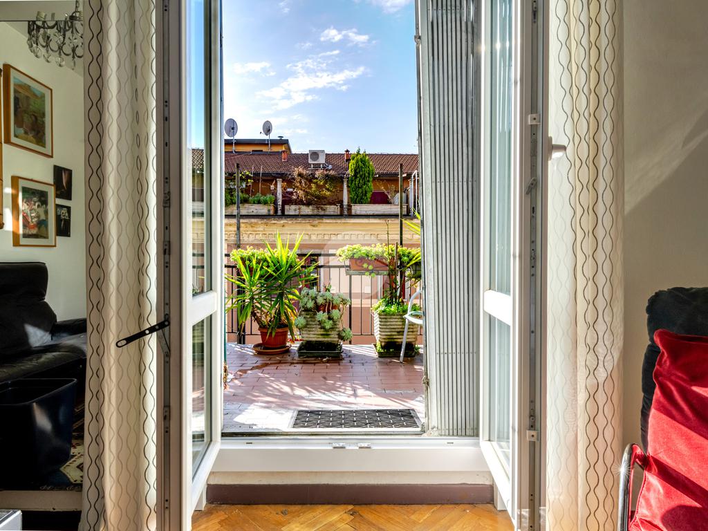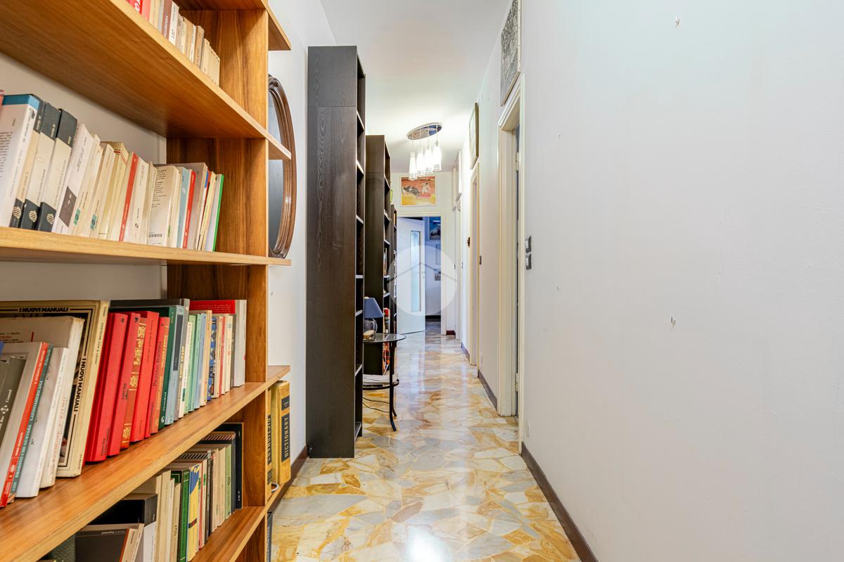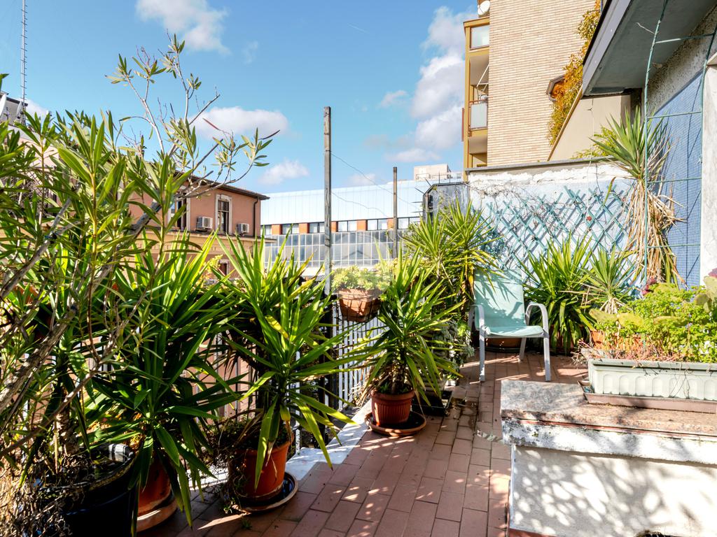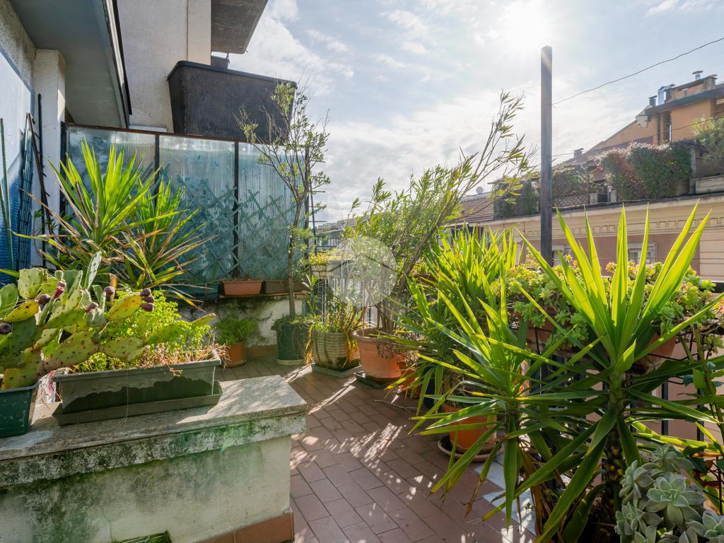 Ingresso in corridoio, dove troviamo, sulla sinistra, un ampio soggiorno dotato di porta finestra che consente l'accesso a un grande terrazzo, ideale per godersi momenti di relax all'aperto, pranzi o serate in compagnia, con un piacevole affaccio su Via Sebastiano Del Piombo. Dall'altro lato, con esposizione opposta, troviamo la cucina abitabile finestrata, anch'essa luminosa, che si affaccia su una corte interna, perfetta per chi ama cucinare in tranquillità e al contempo godersi una vista serena e riservata. Proseguendo, con la stessa esposizione, accediamo alla zona notte, composta da: una camera matrimoniale con porta finestra che permette l'accesso al balcone, una seconda stanza, attualmente adibita a studio, ma versatile e facilmente trasformabile in una stanza per bambini, e infine un bagno finestrato, con vasca.