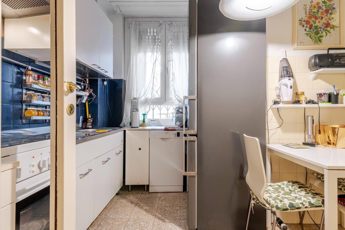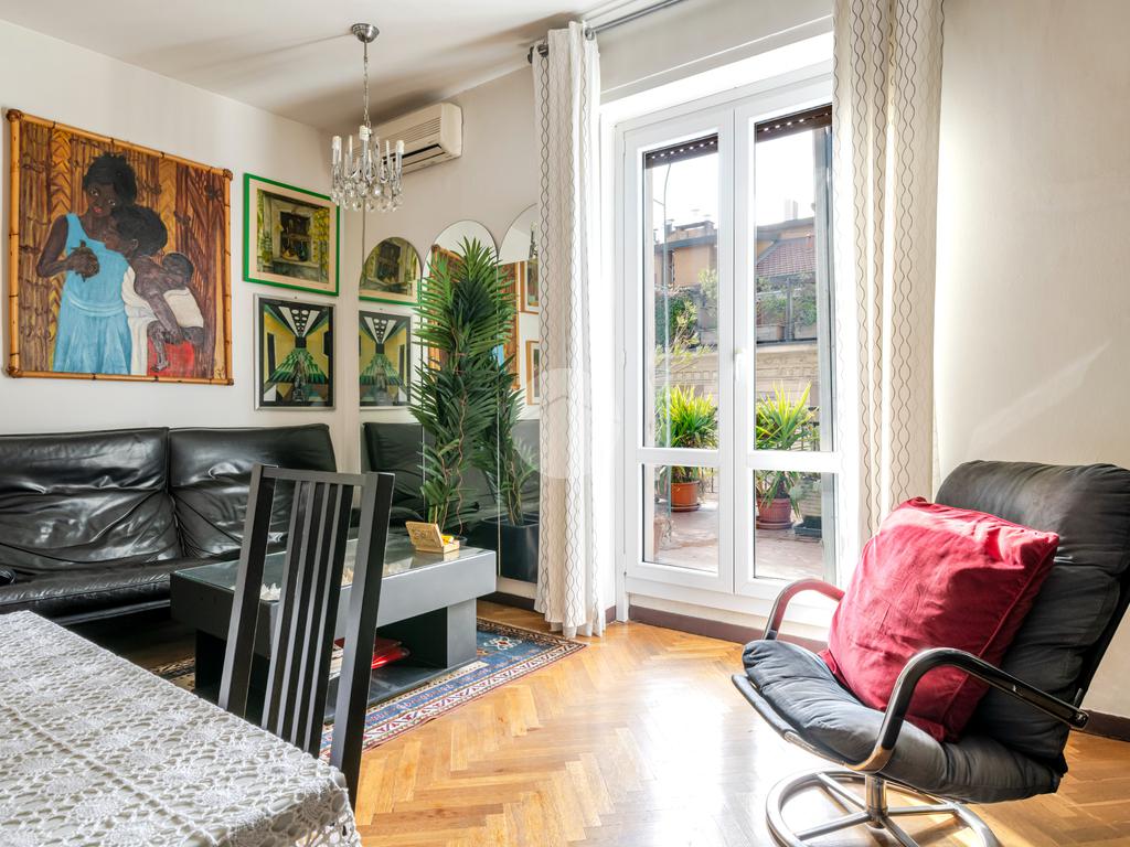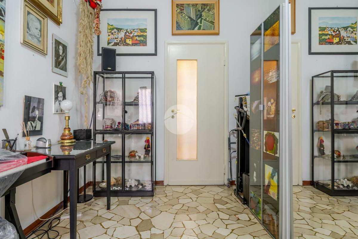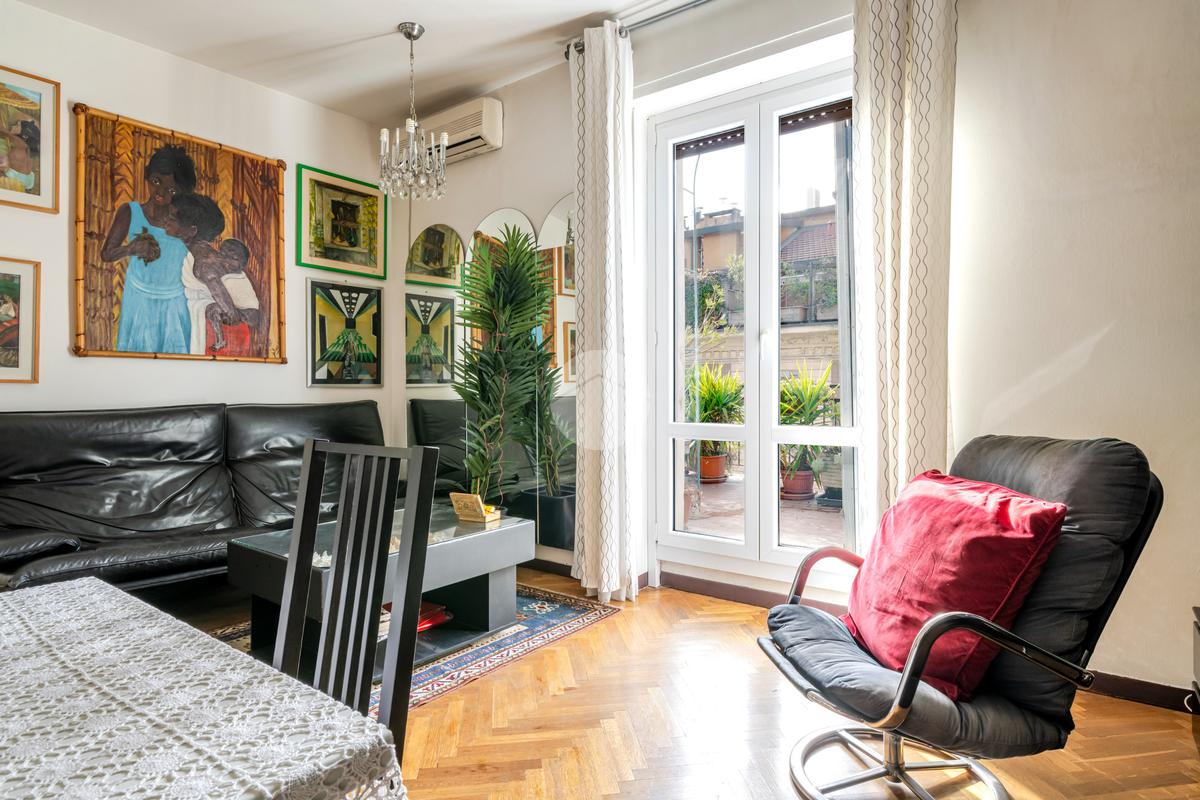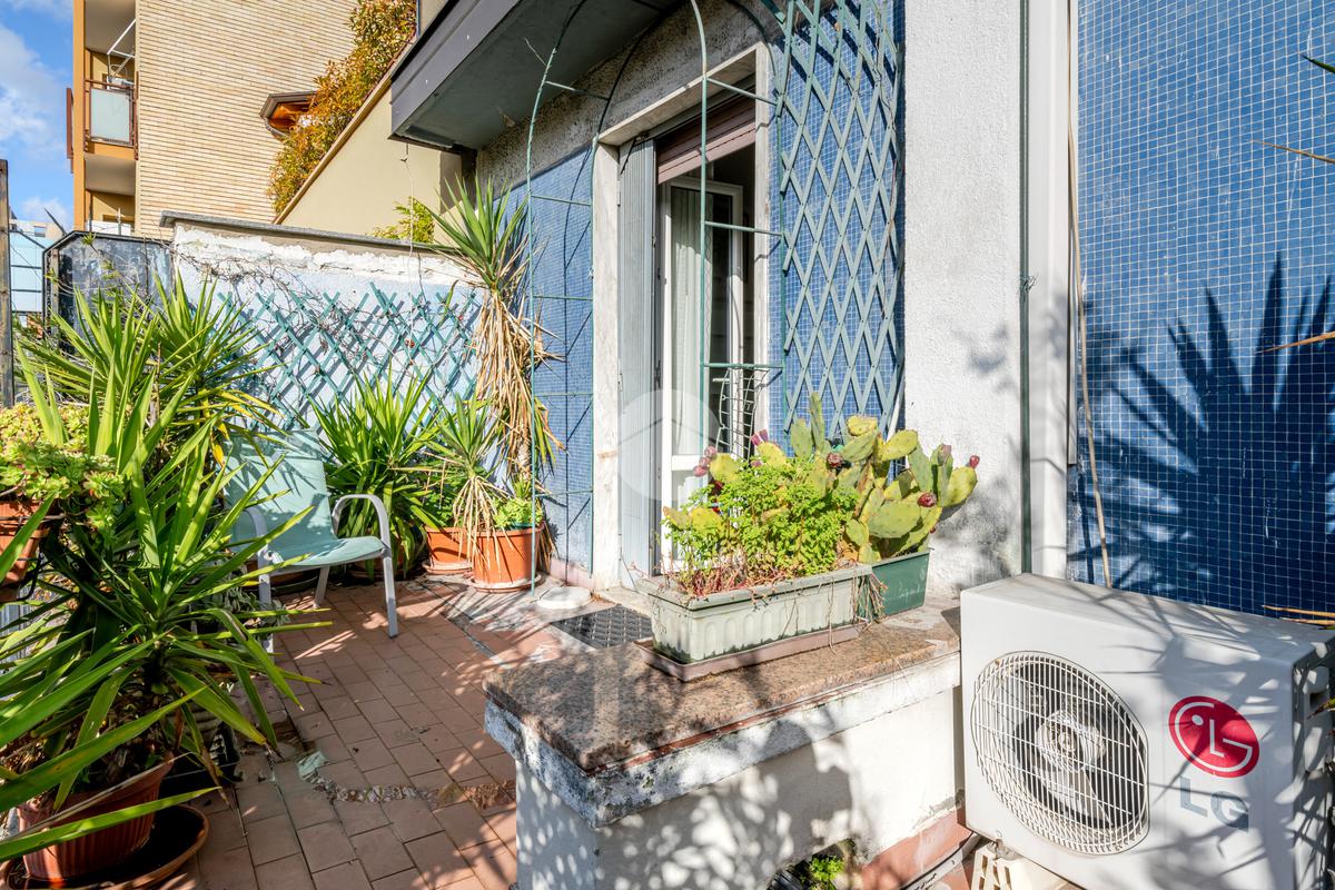 Ingresso in corridoio, dove troviamo, sulla sinistra, un ampio soggiorno dotato di porta finestra che consente l'accesso a un grande terrazzo, ideale per godersi momenti di relax all'aperto, pranzi o serate in compagnia, con un piacevole affaccio su Via Sebastiano Del Piombo. Dall'altro lato, con esposizione opposta, troviamo la cucina abitabile finestrata, anch'essa luminosa, che si affaccia su una corte interna, perfetta per chi ama cucinare in tranquillità e al contempo godersi una vista serena e riservata. Proseguendo, con la stessa esposizione, accediamo alla zona notte, composta da: una camera matrimoniale con porta finestra che permette l'accesso al balcone, una seconda stanza, attualmente adibita a studio, ma versatile e facilmente trasformabile in una stanza per bambini, e infine un bagno finestrato, con vasca.
